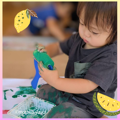 私は、「ちょっと待って」って言って止めました。今、この子が楽しいのはこのスポンジの絵の具の感触。このことに意味があると思うから、ちょっと黙って見てあげて」という話をしたんです。