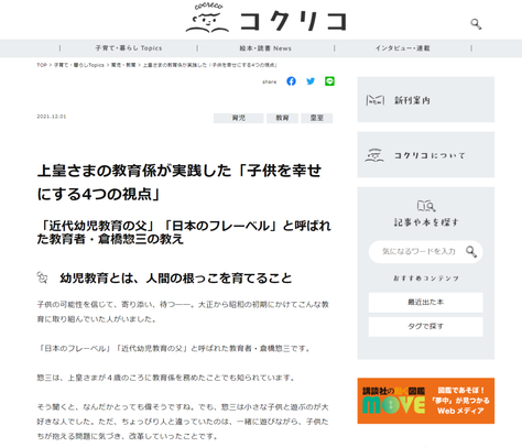 『倉橋惣三物語-上皇さまの教育係』は、講談社のWEBサイトで試し読みが出来ます。